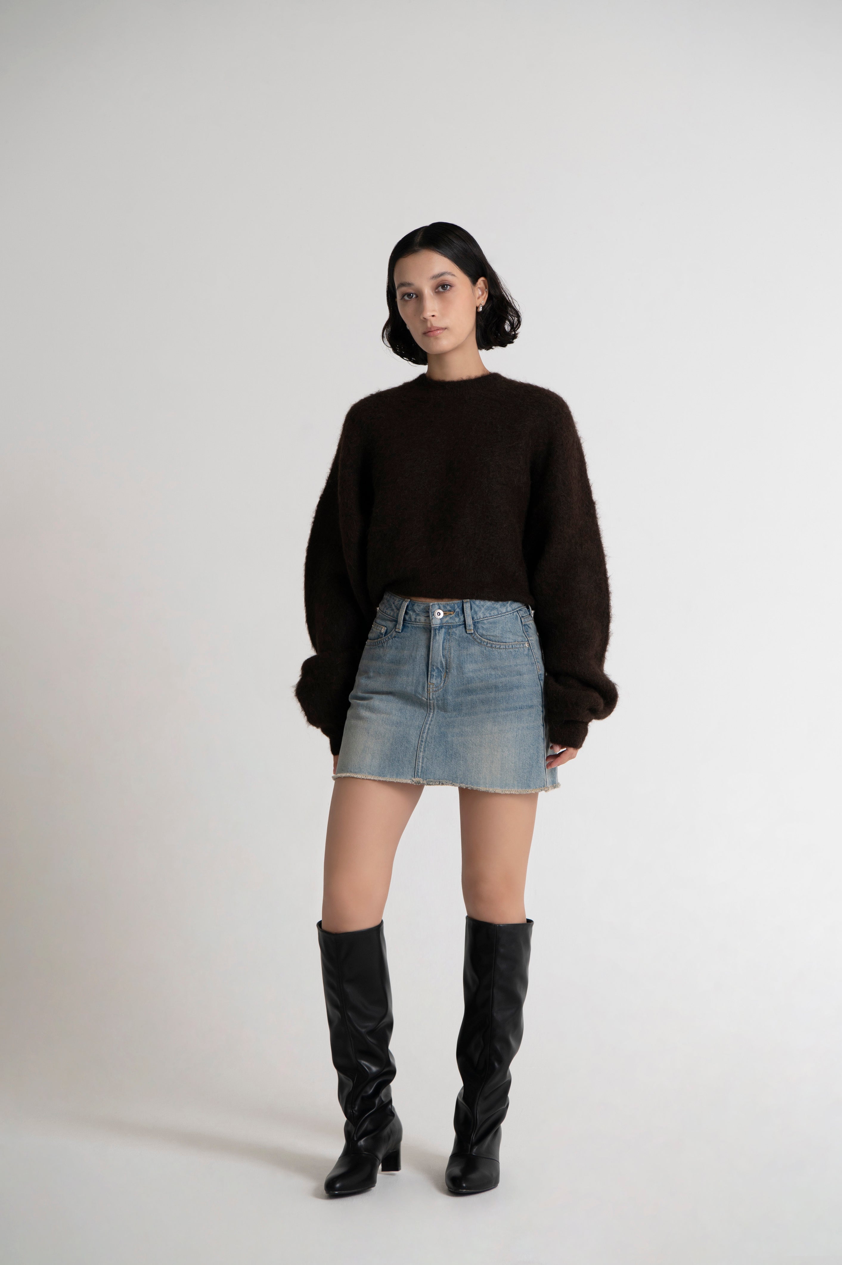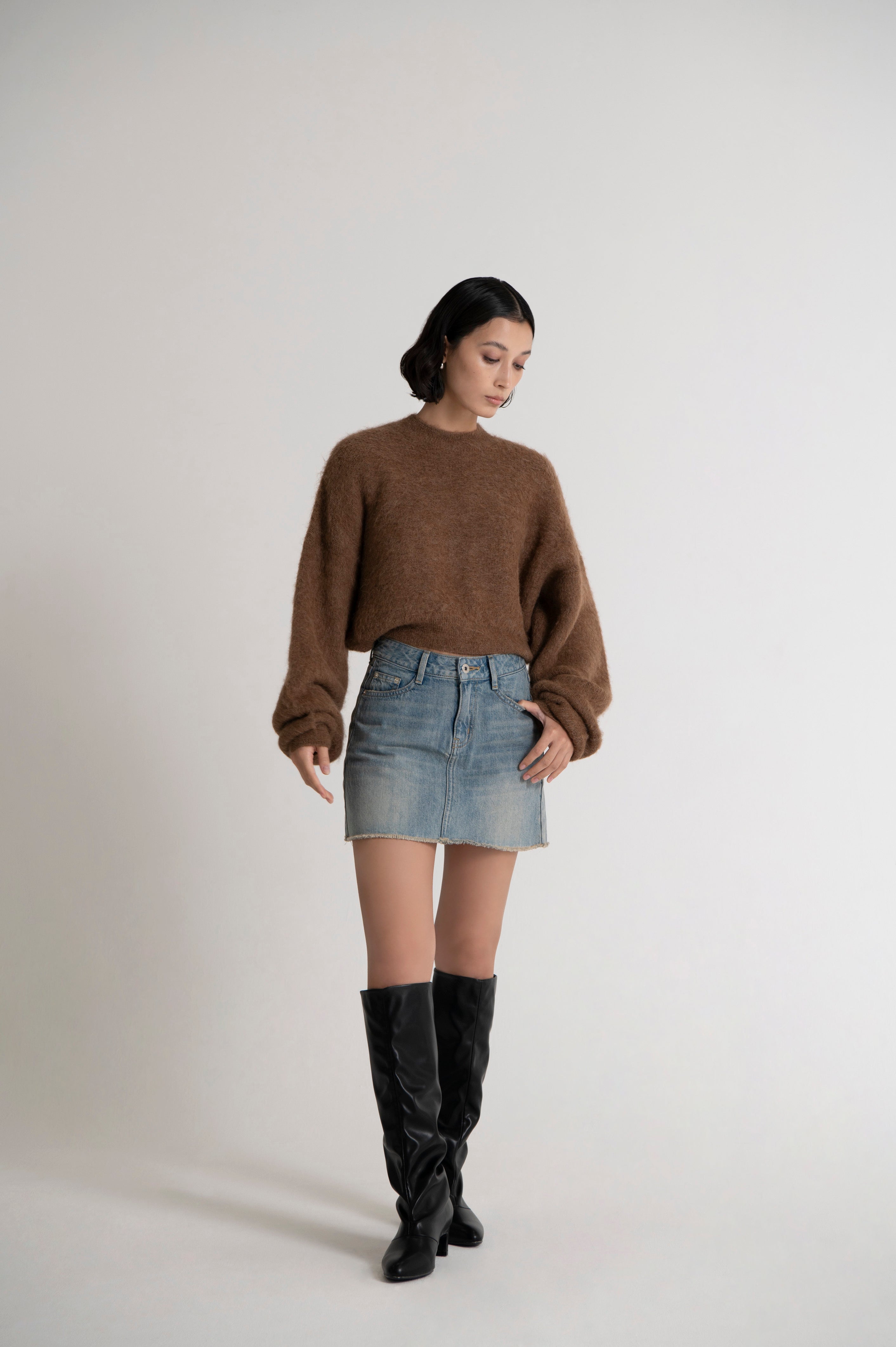 Cropped Mock Neck Crew Sweat Brown