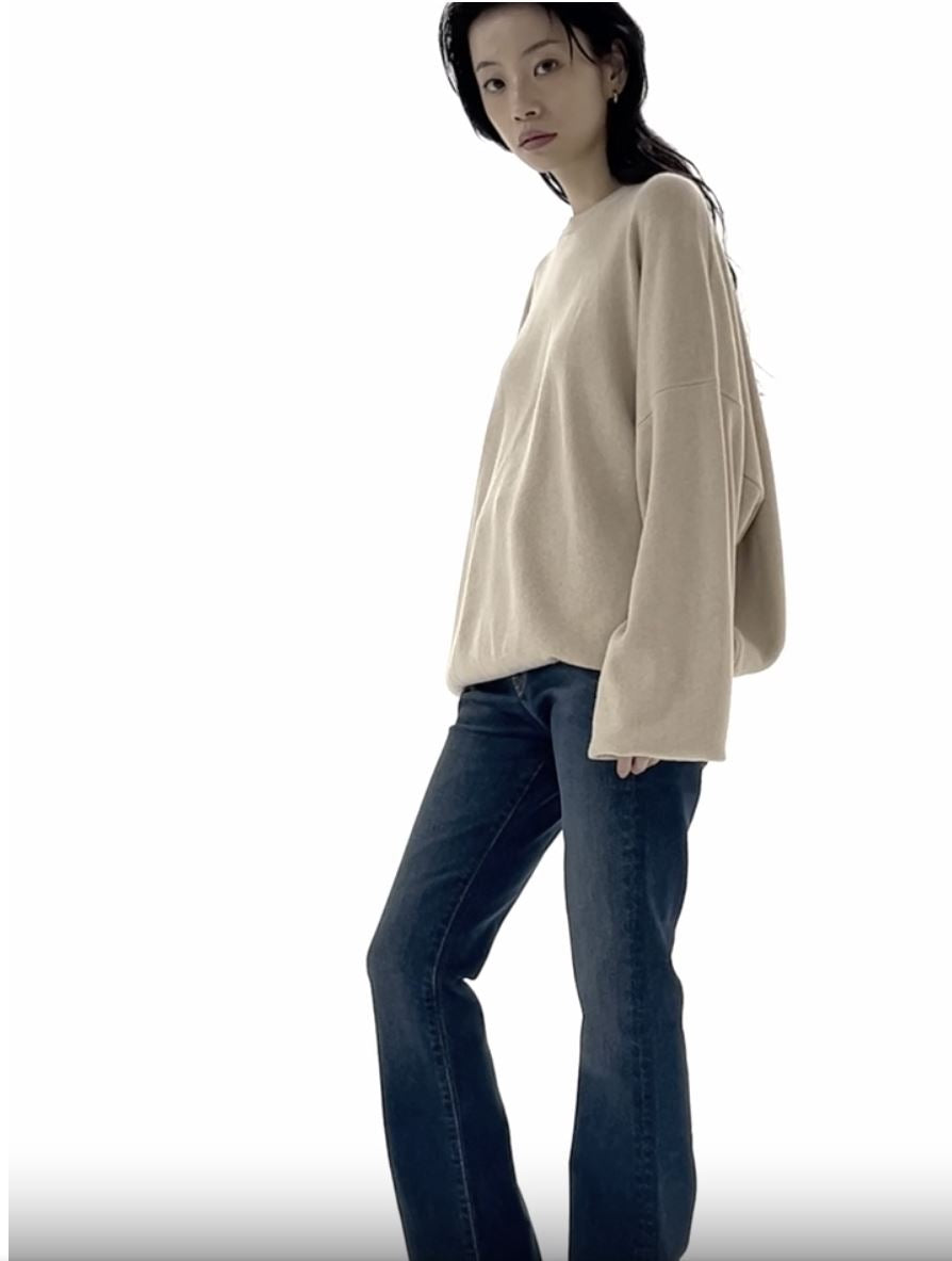 Cropped Mock Neck Crew Sweat Light Brown