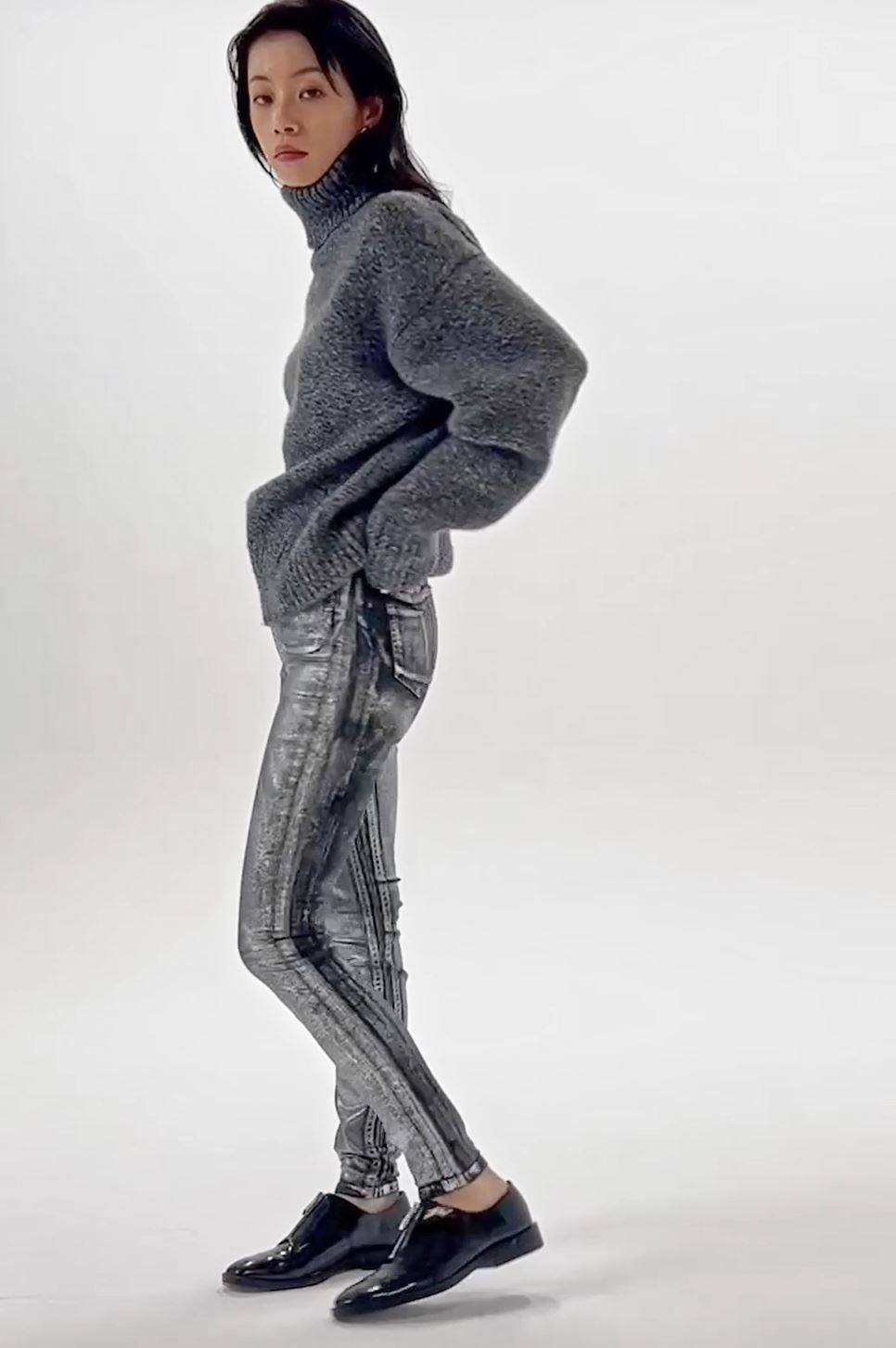 Cropped Mock Neck Crew Sweat Charcoal Grey